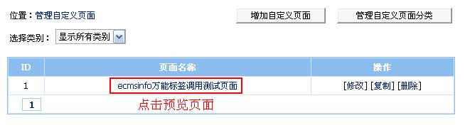 確定"標簽模板ID"值:標簽模板增加完畢后,返回"管理標簽模板"頁面,得到由CMS系統自動分配、新增加的標簽模板ID值. |
