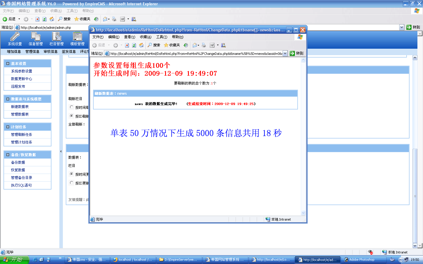 ![]() 生成過程截圖: ![]() 5000條生成時(shí)間:18秒 生成后的欄目目錄: |