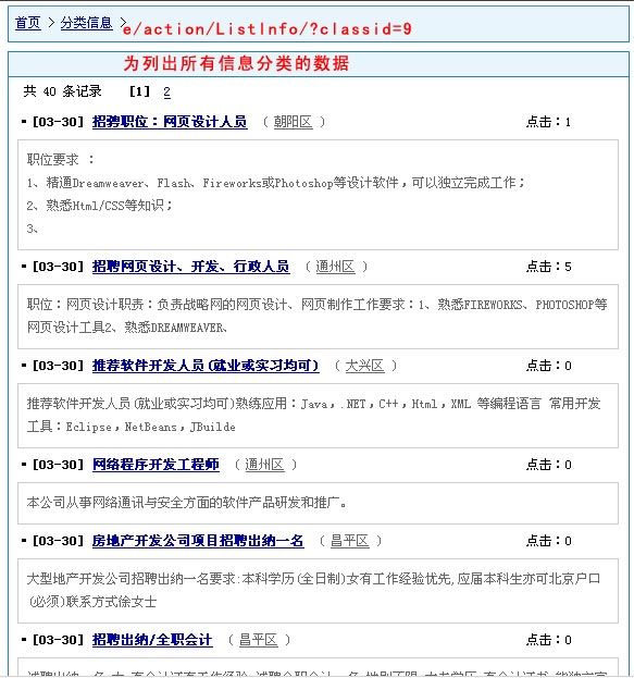 2、假設“e/action/ListInfo/?classid=9”顯示出的是所有信息分類欄目的數據。