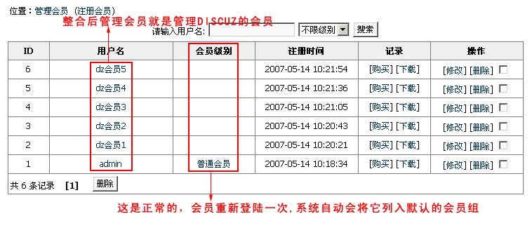 說明:整合會員接口后系統直接使用的是DISCUZ的會員表,所有會員注冊是直接轉到DISCUZ。