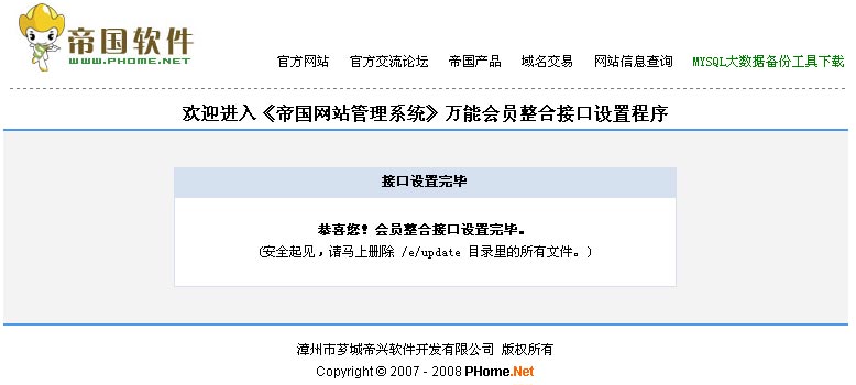 使用帝國CMS萬能會員整合接口可以整合任何MYSQL的會員系統。