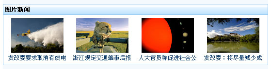 <table width="100%" border="0" cellpadding="3" cellspacing="1" bgcolor="#96C8F1" align="center"> <tr> <td background="template/default/images/bg_title_sider.gif"><b>圖片新聞</b></td> </tr> <tr> <td bgcolor="#FFFFFF"> <table width="100%" border="0" cellspacing="1" cellpadding="3"> <tr> <?php $spacesql=espace_eloop(2,4,0,1); while($spacer=$empire->fetch($spacesql)) { $spacesr=espace_eloop_sp($spacer); ?> <td height="25" align="center"> <a href="<?=$spacesr[titleurl]?>" target="_blank"><img src="<?=$spacer[titlepic]?>" width="108" height="72" border="0"></a> <br> <a href="<?=$spacesr[titleurl]?>" target="_blank"><?=esub($spacer[title],20)?></a> </td> <? } ?> </tr> </table> </td> </tr> </table> |