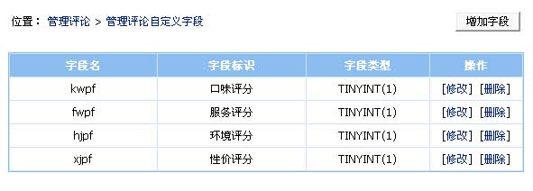 (2)、增加所有字段后,返回管理評論自定義字段就能看到增加的字段,如下圖: