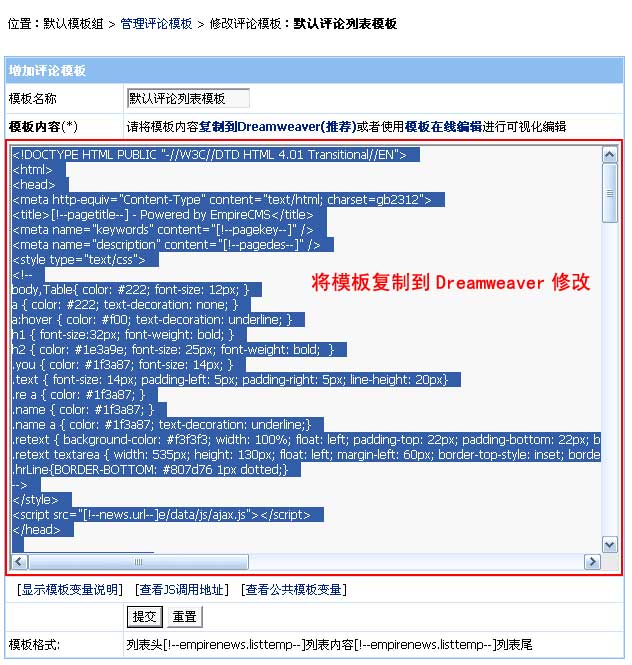 (2)、將模板復制到Dreamweaver修改: