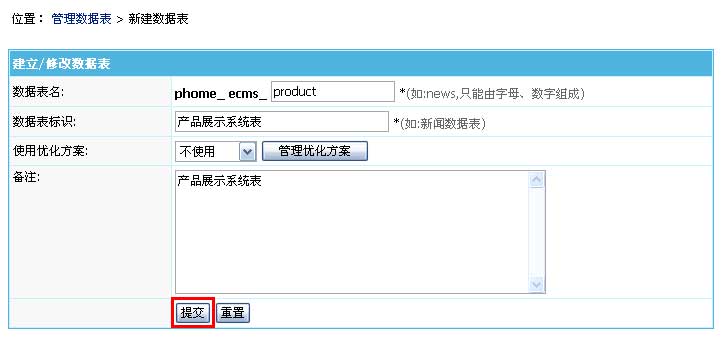 | 2、提交后,數(shù)據(jù)表即可增加成功,轉(zhuǎn)至“管理數(shù)據(jù)表”會顯示剛才新建的表,如下圖: |