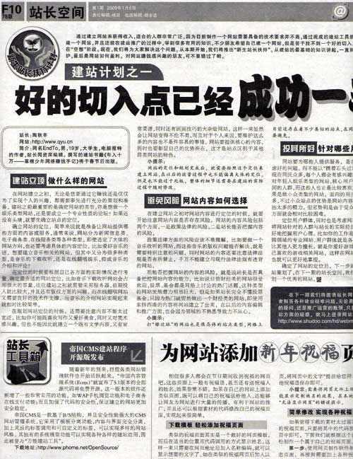 1月5日 《電腦報》第1期 以標(biāo)題為“帝國CMS建站程序開源版發(fā)布”對【帝國CMS】進行了報道。