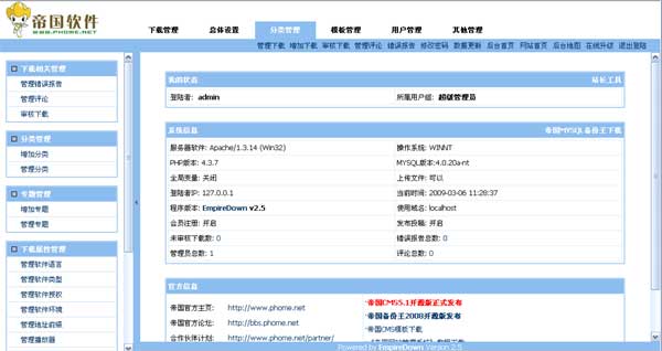 帝國(guó)下載系統(tǒng)2.5開(kāi)源版升級(jí)功能列表