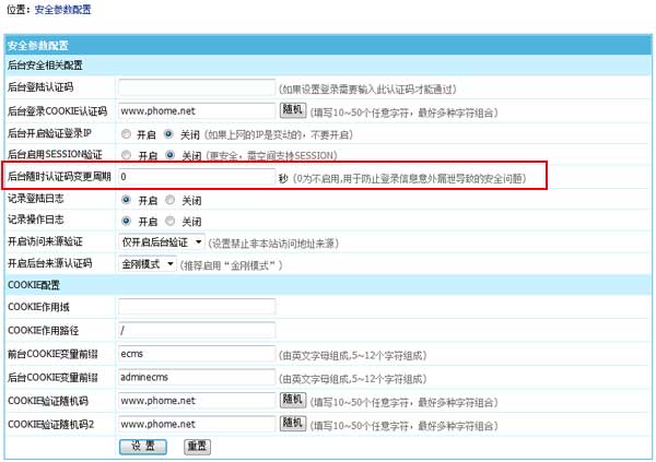 后臺“隨時認證碼”支持設定多少秒更新“新登錄驗證信息”,間隔多少秒后自動產生新的登錄信息,使舊登錄信息失效,從而保護因管理員電腦中毒或者服務器受ARP等攻擊時的后臺安全,讓網站管理更無憂。