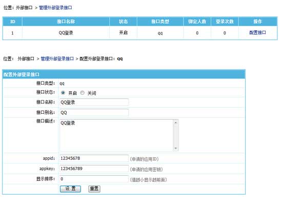 發布7.0時,將率先提供QQ登錄接口(插件方式),其他接口用戶也可以參考默認QQ接口自行增加。