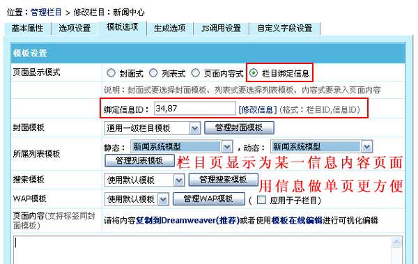 V6.6新增欄目綁定信息功能,用信息做單頁更方便
