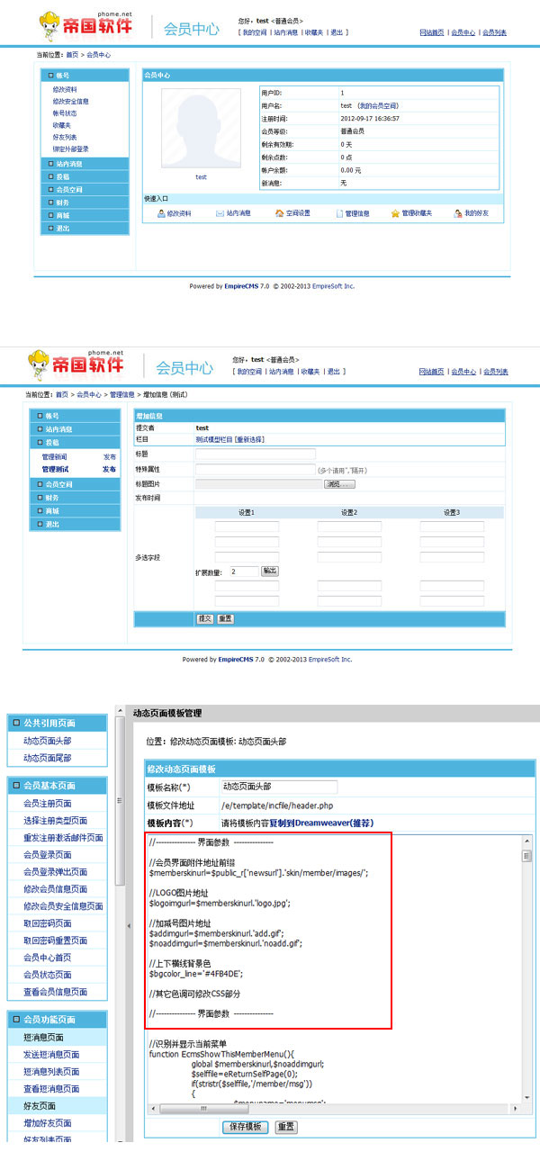 帝國CMS7.0會員中心采用新界面,更清晰實用。