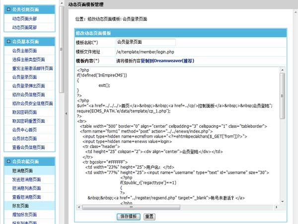 帝國(guó)CMS7.0動(dòng)態(tài)頁(yè)面模板支持后臺(tái)直接修改,更方便