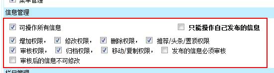 帝國CMS7.0信息管理權限分配更細,權限控制更靈活