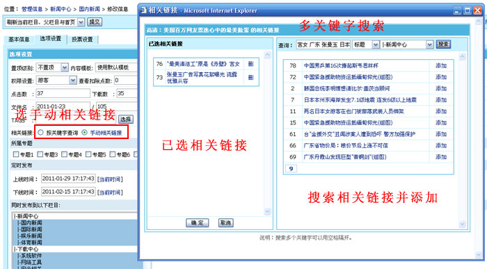 帝國CMS 6.6版相關信息支持用關鍵字查詢和手動兩種方式,調用更精準。