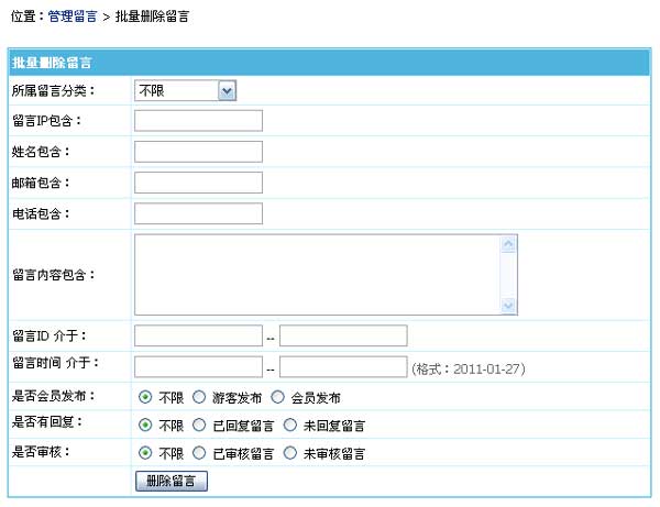 (3)、支持留言時(shí)間范圍刪除