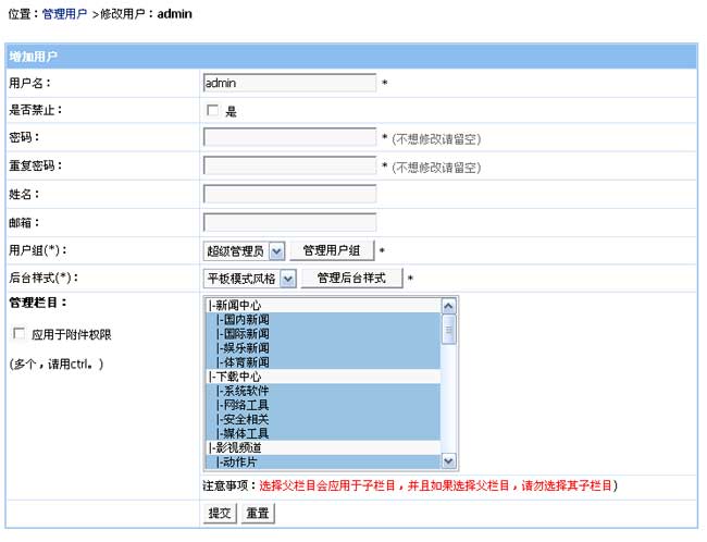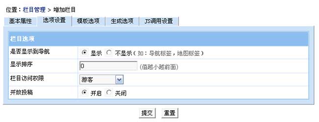 增加父欄目(選項設(shè)置)
