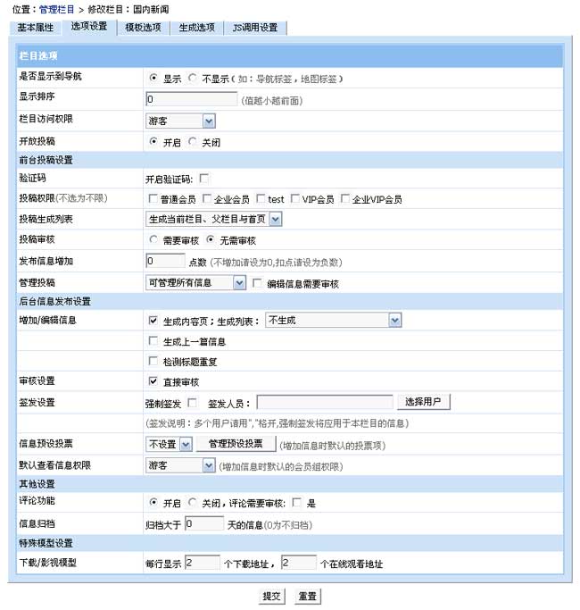 增加終極欄目(選項設(shè)置)