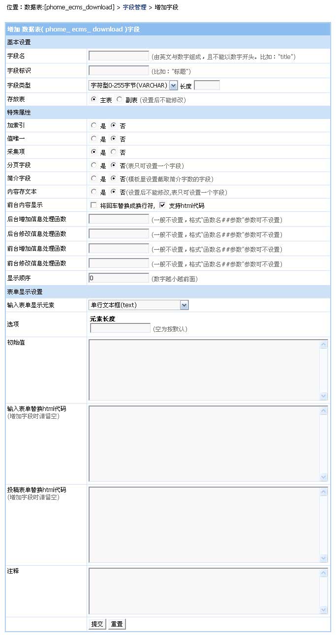 管理字段