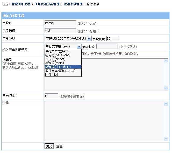 增加反饋字段