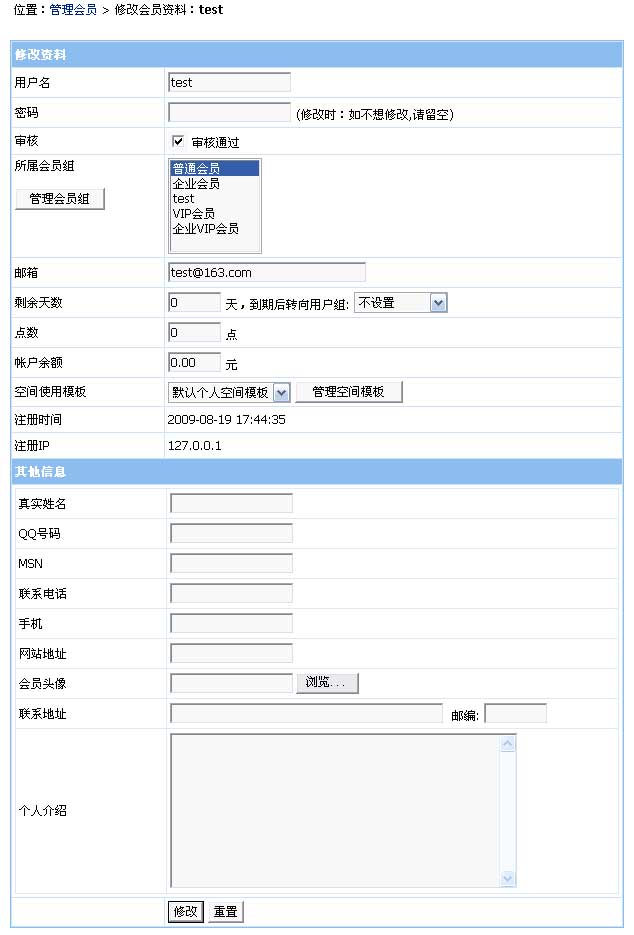 后臺修改個人資料