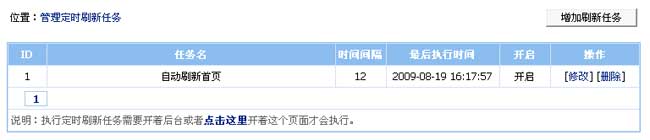 定時生成支持生成首頁/欄目頁/專題頁/自定義列表/自定義頁面/自定義JS,并且支持多選