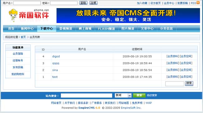 帝國CMS 6.0開源版升級功能部分截圖