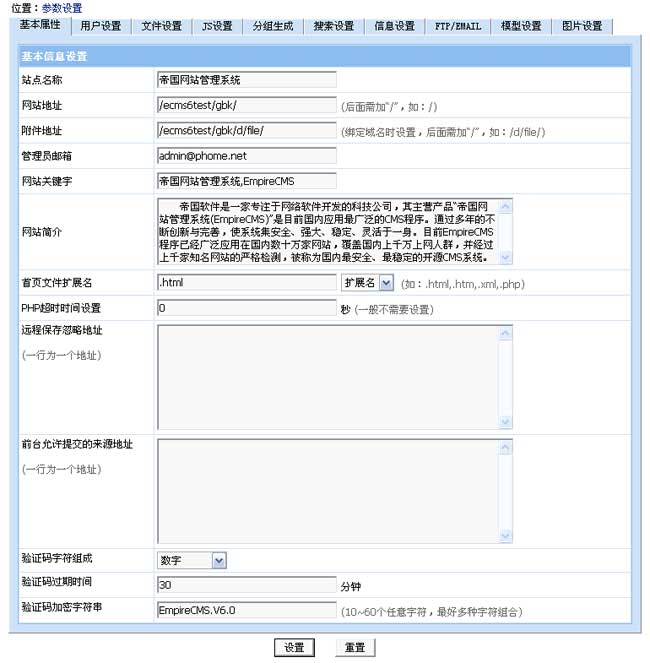 網(wǎng)站信息及驗證碼設(shè)置