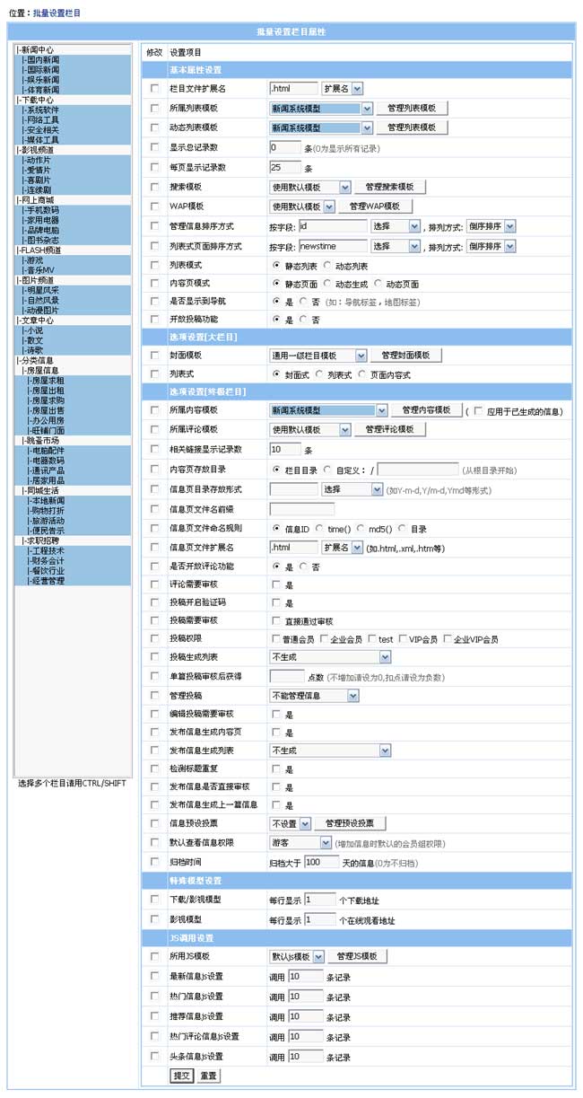 批量設(shè)置欄目屬性