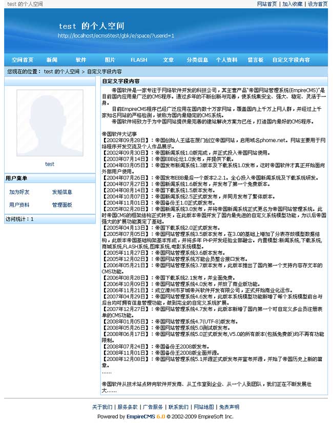 空間新增單頁信息功能,可以顯示會員表某一個自定義字段內(nèi)容作為單頁顯示的內(nèi)容