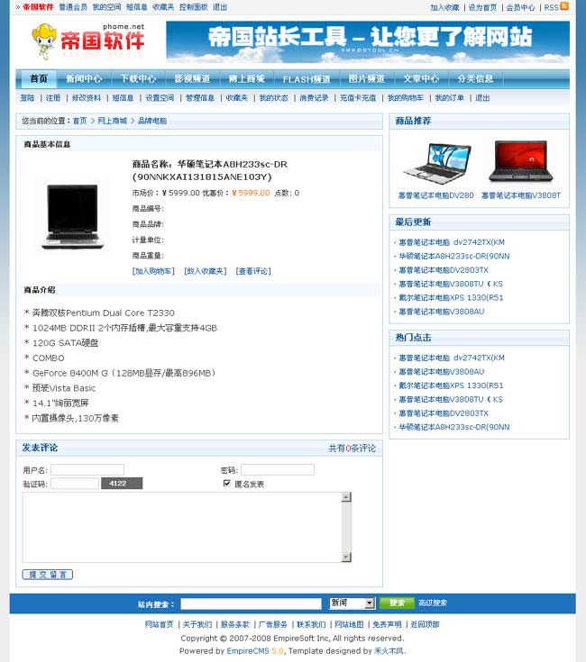 下面為前臺部分截圖,查看5.0后臺截圖可以